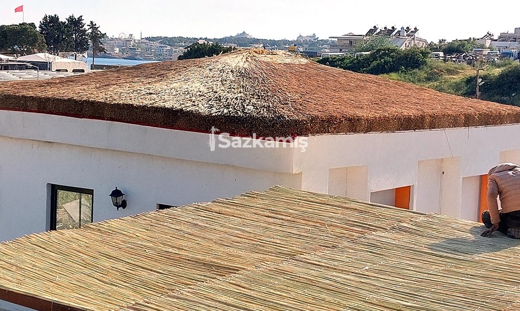 Ancak saz kamışları ve doğal hasır otu, çin otu gibi ürünlerle bir çatı kaplaması yapmak istiyorsanız bu işlemin kesinlikle bizim gibi tecrübeli bir hasır dekorasyon ustası ile yapılması gerekmektedir.
